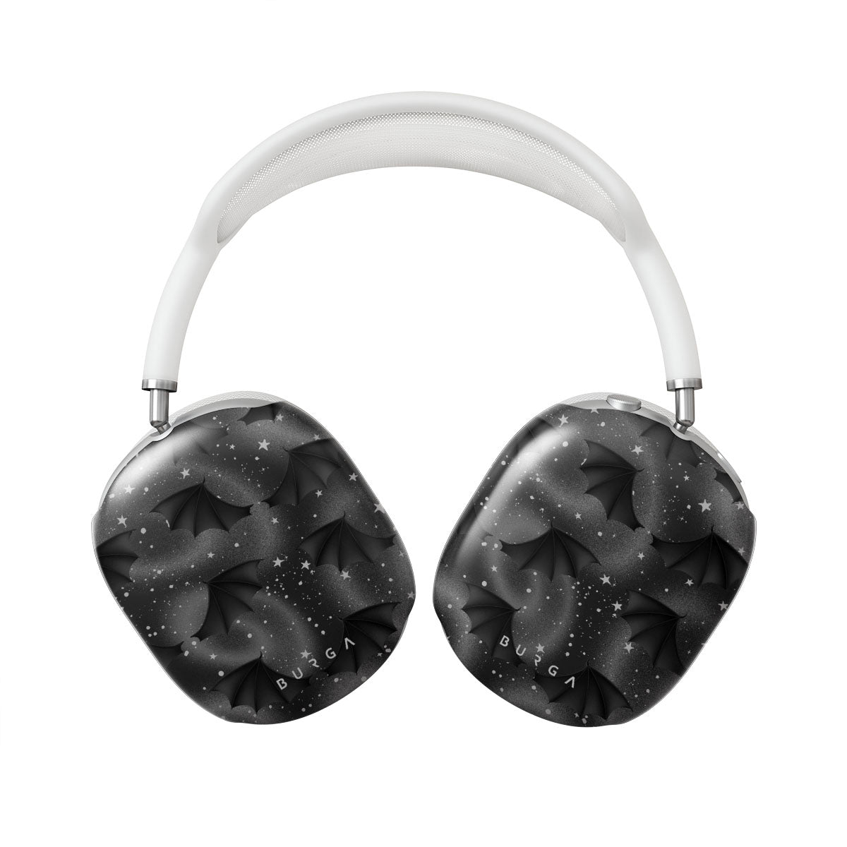 En este diseño: alas de murciélago, estrellas, remolinos místicos, cielo negro