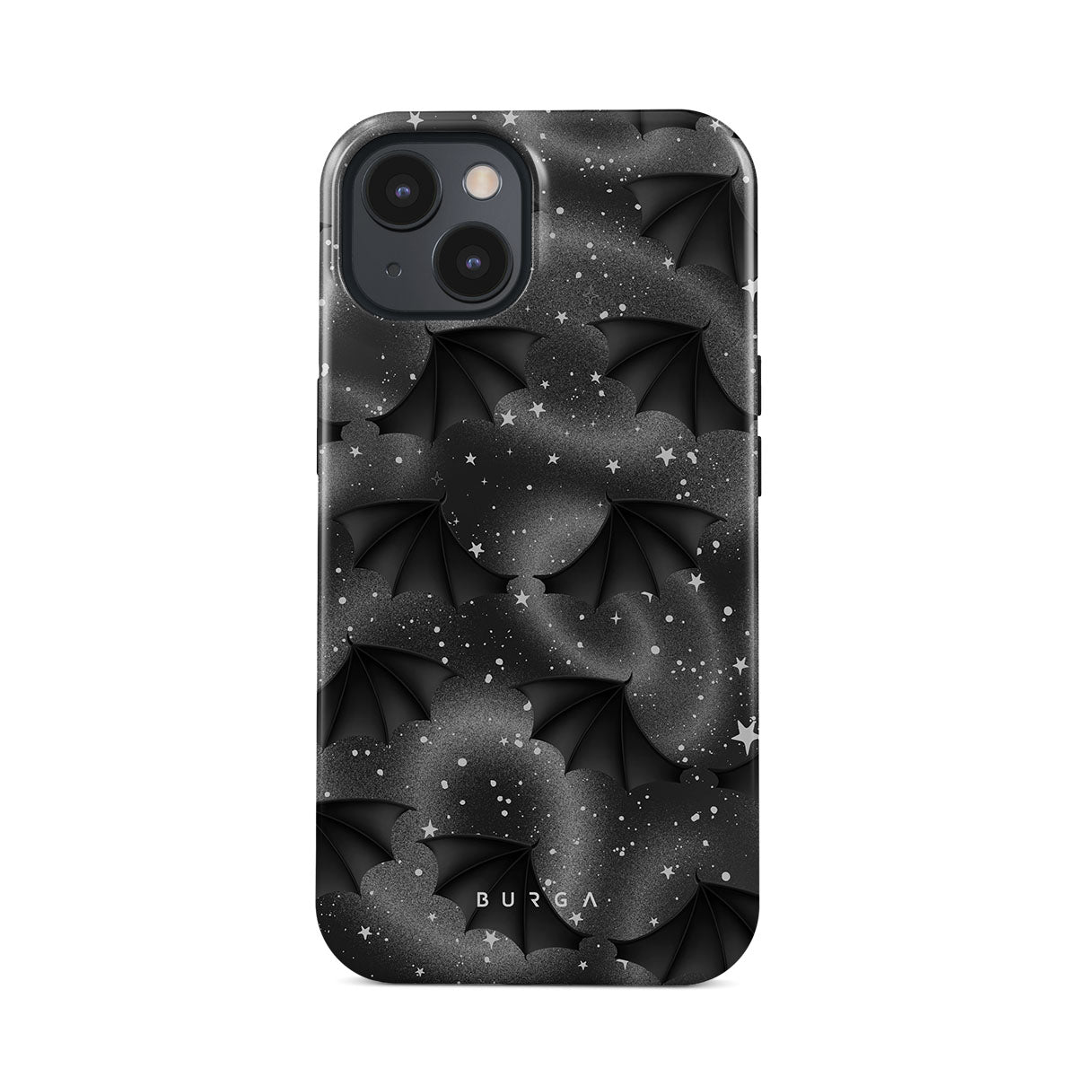 En este diseño: alas de murciélago, estrellas, remolinos místicos, cielo negro
