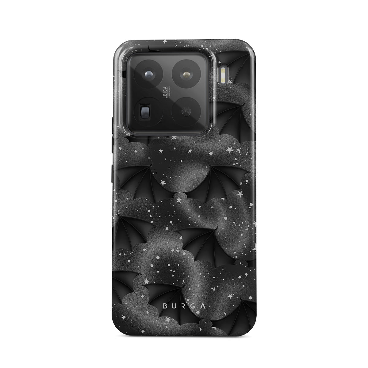 En este diseño: alas de murciélago, estrellas, remolinos místicos, cielo negro