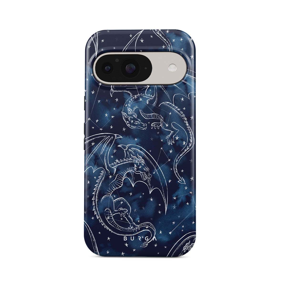 En este diseño: dragones, estrellas, constelaciones, cielo azul oscuro