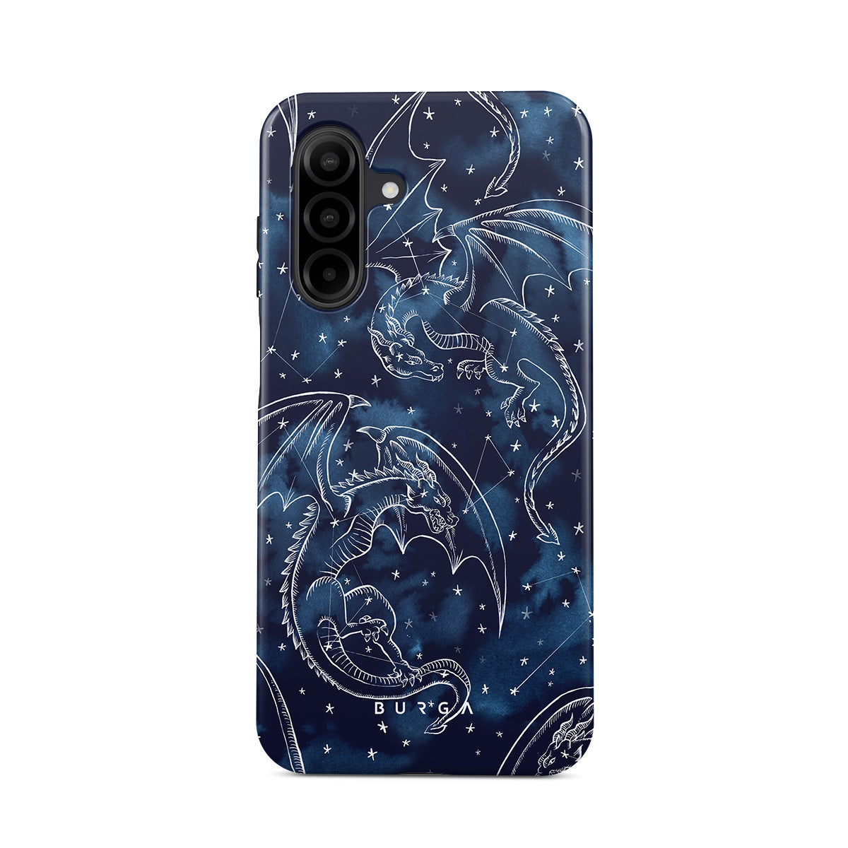 En este diseño: dragones, estrellas, constelaciones, cielo azul oscuro