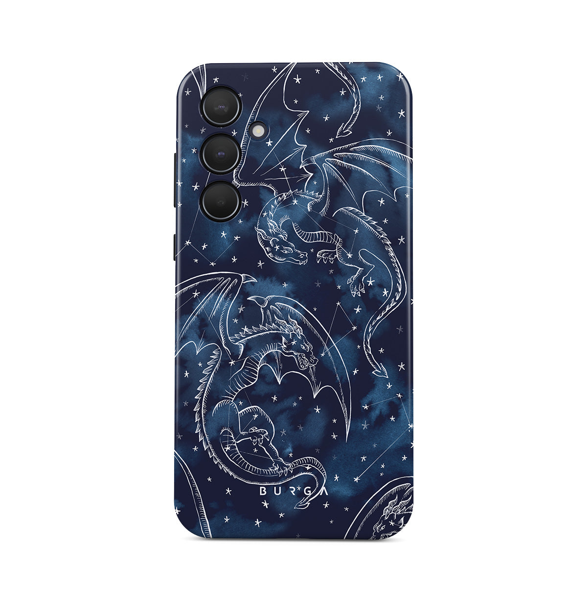 En este diseño: dragones, estrellas, constelaciones, cielo azul oscuro