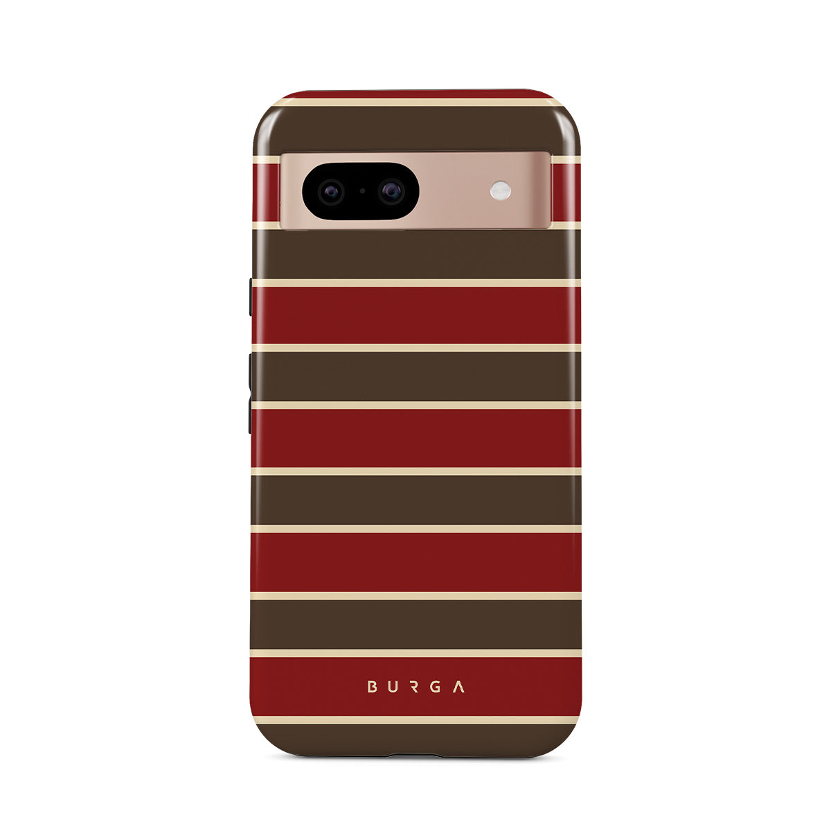 Características de este diseño: rayas rojas, rayas cafés, patrón clásico, patrón geométrico