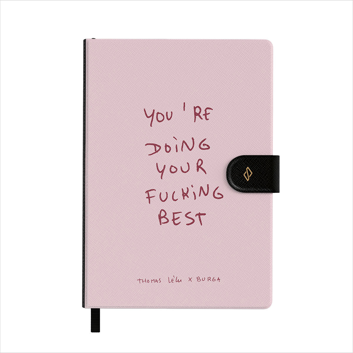 Presenta patrones BURGA bien detallados en una cubierta frontal de cuero sintético vegano. Rematado con un elegante marcador de página de cinta negra.